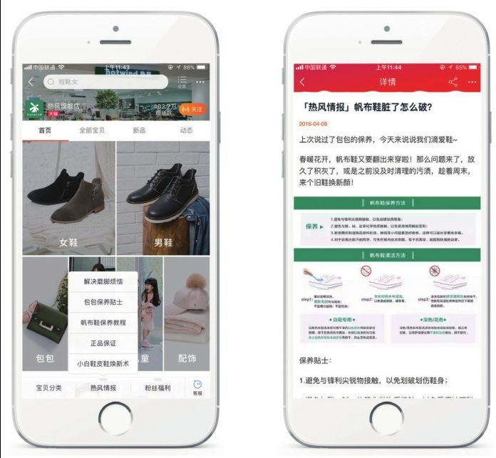 相對于簡單地介紹商品而言,賣家也可以選擇在移動端店鋪中添加一個類似于博客的板塊。這一板塊更像是一種情感的訴說,不僅能讓消費者感受到店鋪的個性,也能起到推銷商品、打造品牌的作用。例如,熱風旗艦店便添加了“熱風情報”板塊(見圖8-26),通過介紹一些商品在后續(xù)使用中可能會出現(xiàn)的一些問題,讓消費者感受到賣家的用心和親和力,從而不會對商品敬而遠之,同時也會產(chǎn)生閱讀的興趣。