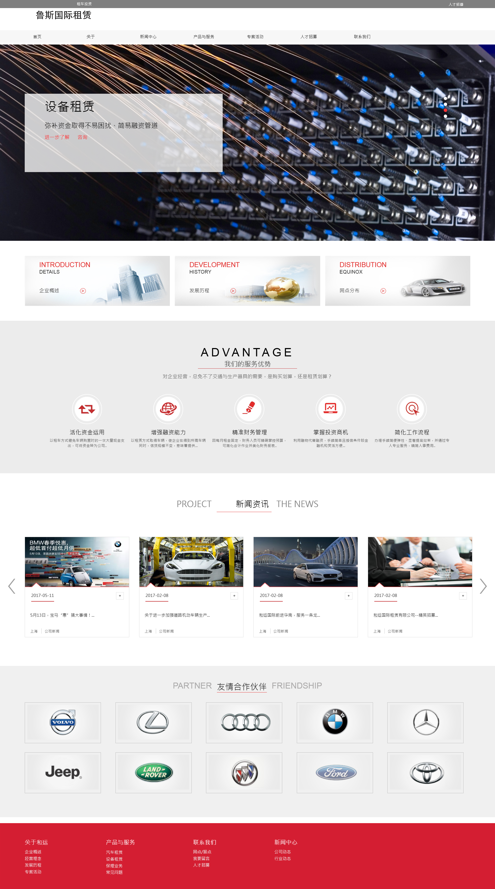 網(wǎng)站制作:魯斯國際租賃新品牌官網(wǎng)改版設(shè)計(jì)項(xiàng)目中,整站所有頁面采用HTML+CSS嵌入式技術(shù)純手寫代碼模式,技術(shù)更高端,更實(shí)用,顏色布局設(shè)計(jì)上,采用集團(tuán)亮紅色第為主,一目了然,簡單大氣,國際化專業(yè)品質(zhì)體現(xiàn)。H5響應(yīng)自適應(yīng)開發(fā)設(shè)計(jì)技術(shù)應(yīng)用,同時(shí)對于首頁及其它頁面的布局設(shè)計(jì)排版,設(shè)計(jì)完成,0圖片合成漏洞,為了SEO更好的體驗(yàn)。