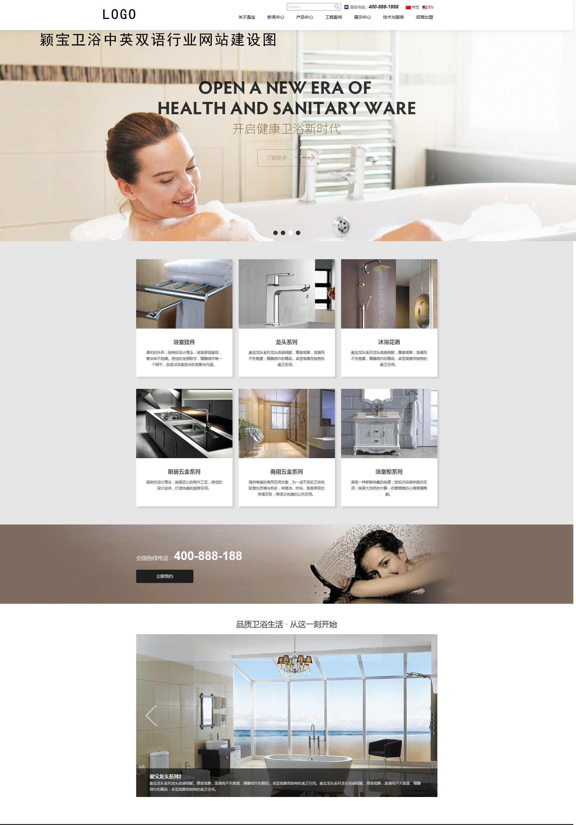 穎寶衛(wèi)浴中英雙語行業(yè)網(wǎng)站建設(shè):穎寶衛(wèi)浴主要以生產(chǎn)環(huán)保全銅浴室掛件、水龍頭、淋浴花灑、網(wǎng)籃等中、高檔衛(wèi)浴五金產(chǎn)品,現(xiàn)已開發(fā)出數(shù)百種不同的款式和風(fēng)格,完全滿足市場(chǎng)的需求,公司的愿景是確實(shí)讓用戶體驗(yàn)到穎寶衛(wèi)浴的優(yōu)雅與舒適。