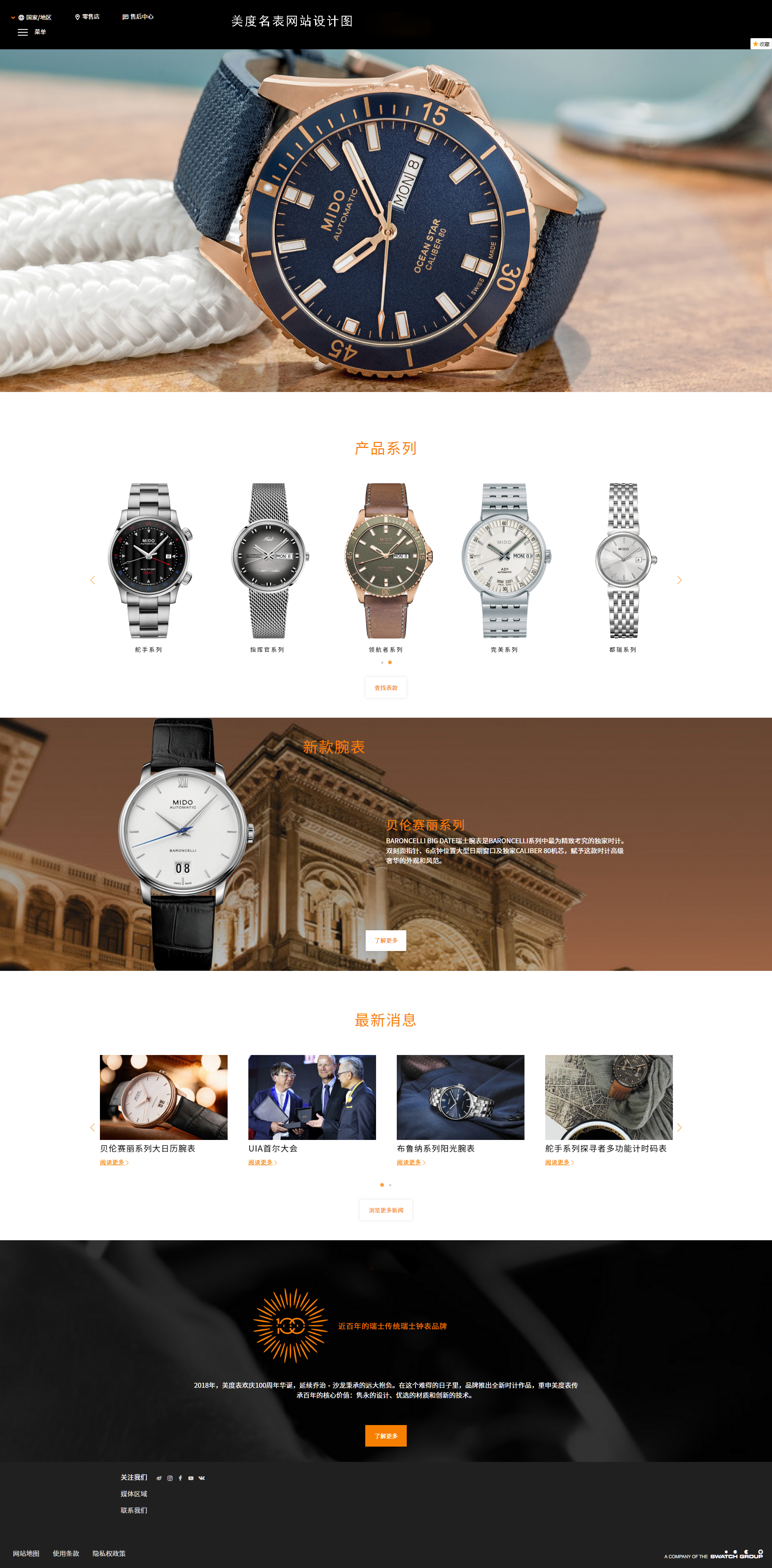 美度名表網(wǎng)站設(shè)計:美度名表是世界知名的手表制造商和經(jīng)銷商,雋永的設(shè)計、優(yōu)選的材質(zhì)和創(chuàng)新的技術(shù)。旨在為用戶提供一款高品質(zhì)材料、賦予腕表難能可貴的雅致外觀,令人一見傾心、精準(zhǔn)的機芯并具有卓越防水性能的手表。