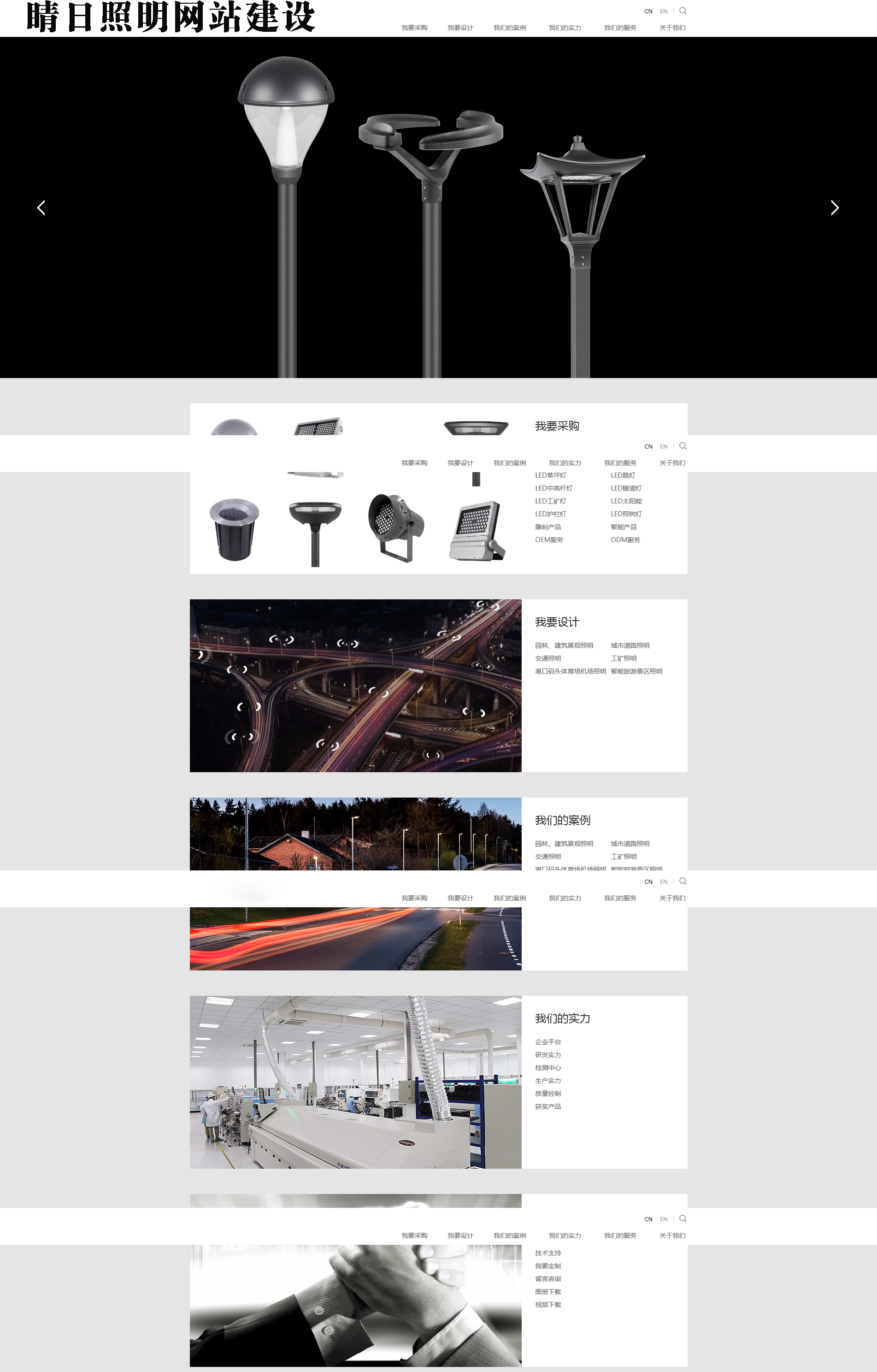睛日照明網(wǎng)站建設(shè)背景:睛照明自1998初創(chuàng),以“創(chuàng)民族品牌,建百年睛日”的愿景,發(fā)展成為集研發(fā)、生產(chǎn)、銷售、服務(wù)一體化的企業(yè)。多年來一直持續(xù)深入前沿市場(chǎng)和技術(shù)創(chuàng)新,專注戶外LED城市道路照明及戶外專業(yè)市場(chǎng)領(lǐng)域;公司立足市場(chǎng)以客戶為中心,憑借不斷提升的創(chuàng)新能力、融合靈活的定制能力、日趨完善的交付能力、完善的售后服務(wù)享譽(yù)海內(nèi)外一百多個(gè)國家,成為深受客戶信賴的品牌。