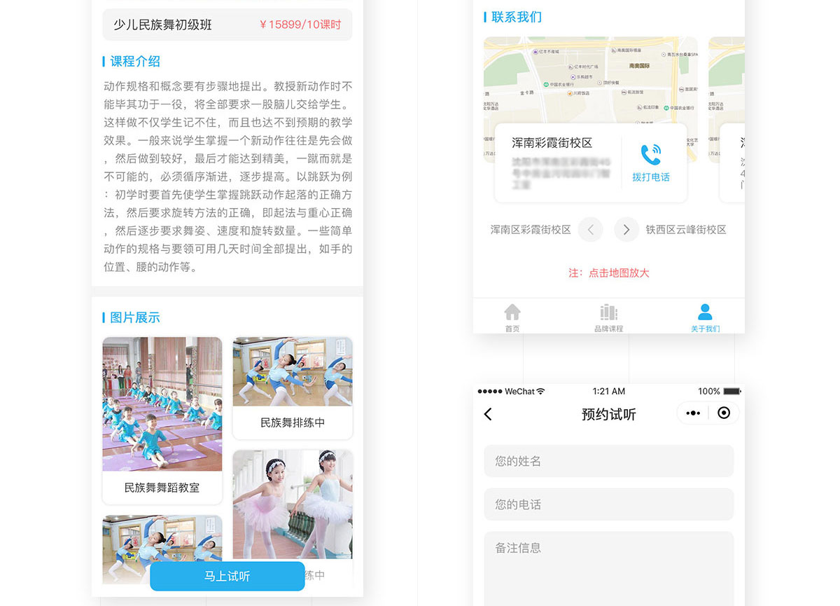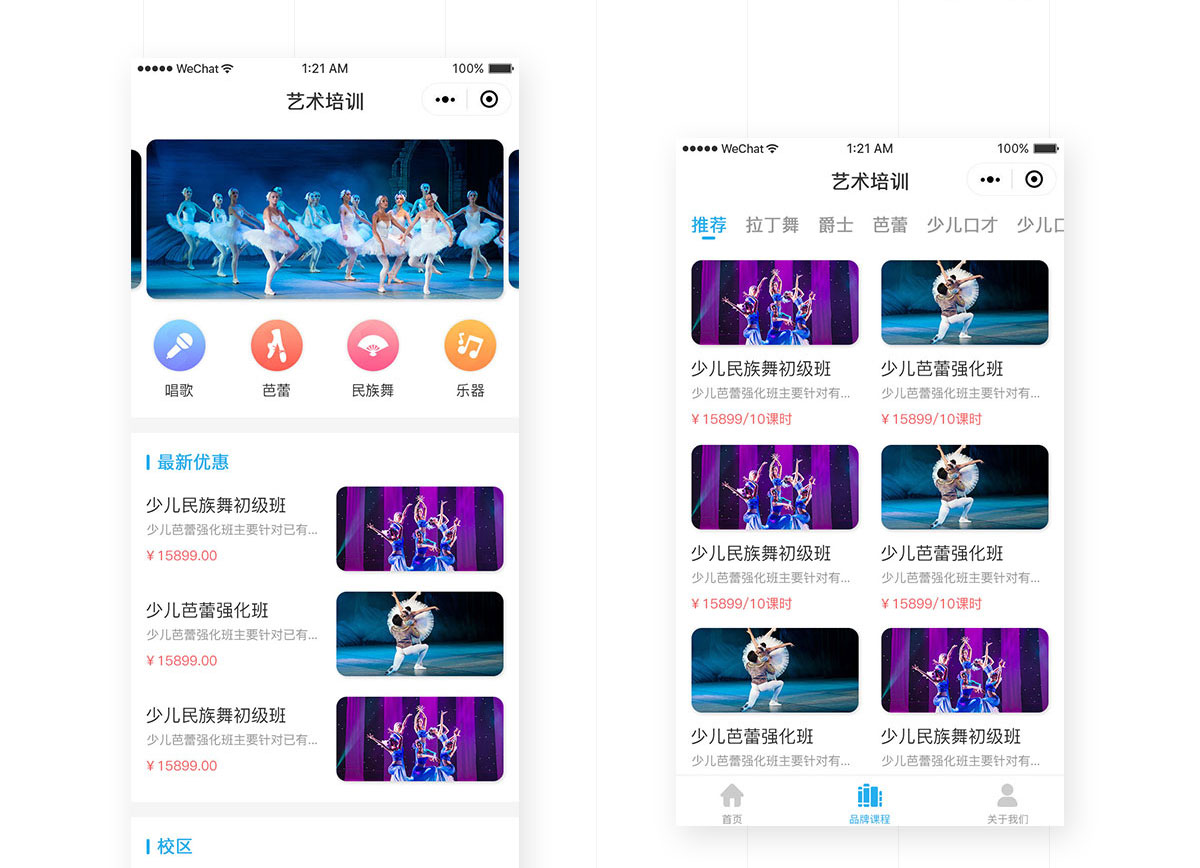 該小程序主要針對少兒及兒童的藝術(shù)教育培訓機構(gòu),用于品牌的課程的宣傳及推廣,首頁課程分類展示,并推薦最新優(yōu)惠的課程,使家長第一時間找到適合孩子的藝術(shù)課程,可在線預約,教師會在后臺收到預約信息。