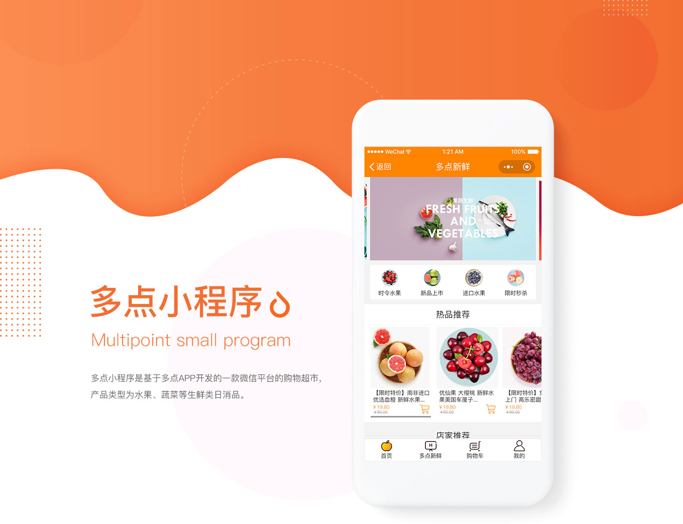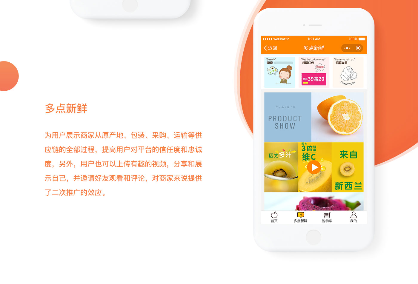 這款小程序是結(jié)合點(diǎn)一點(diǎn)新鮮app刪減不必要的信息,保留核心內(nèi)容,更好的傳遞購物信息,品類覆蓋生鮮日白等日常消費(fèi)品,依托于本地大型商超的深度結(jié)合,提供高品質(zhì),低價格,2小時送達(dá)的優(yōu)質(zhì)服務(wù)。