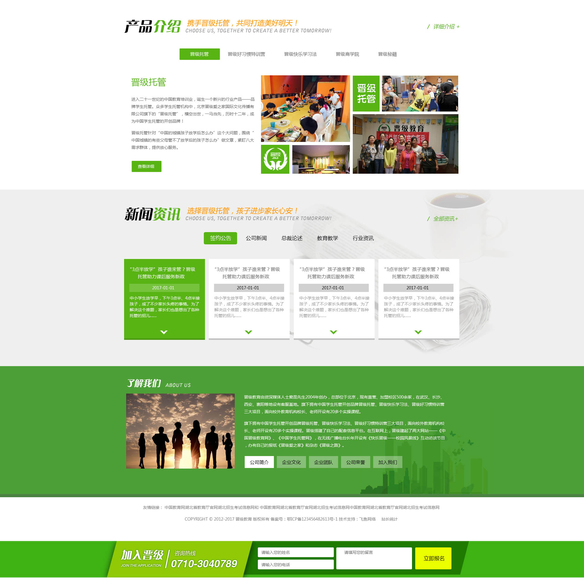 眾多學生托管機構中,北京晉級之家國際文化傳播有限公司旗下的“晉級托管”,橫空出世,一馬當先。晉級托管針對“中國的城鎮(zhèn)孩子放學后怎么辦”這個大問題,圍繞“中國城鎮(zhèn)的有些父母管不了放學后的孩子怎么辦”做文章,緊盯八大需求群體,提供放心服務。