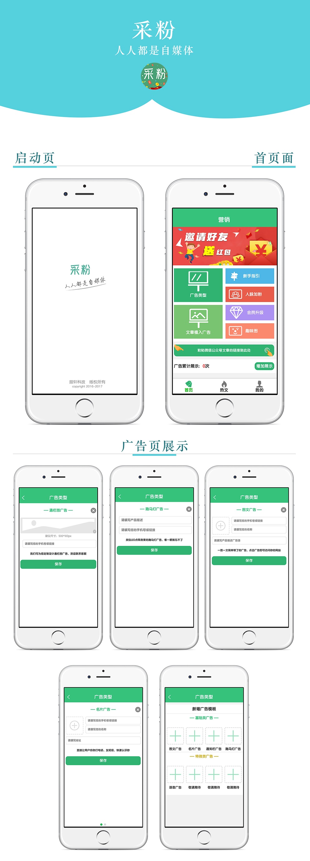 采粉是一款微信加粉營銷類APP,不僅適合做微商的用戶,同樣適用于一些自媒體平臺創(chuàng)作者,可以通過采粉APP快速加粉,在文章輕松植入自己想要的廣告,還可以定制不同樣式的廣告類型。