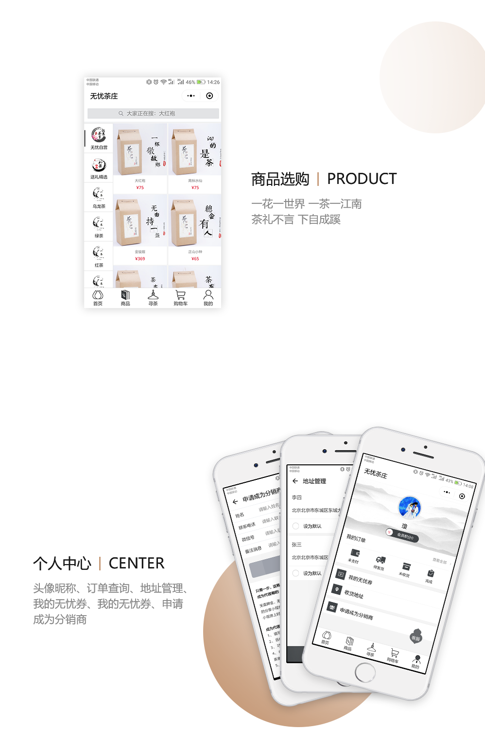 無憂品茶莊小程序是以品茶、鑒茶、購(gòu)茶為主線推廣茶道、茶禮儀、茶文化、為宗旨,為廣大愛茶人士建立值得信賴的線上購(gòu)茶品臺(tái)。