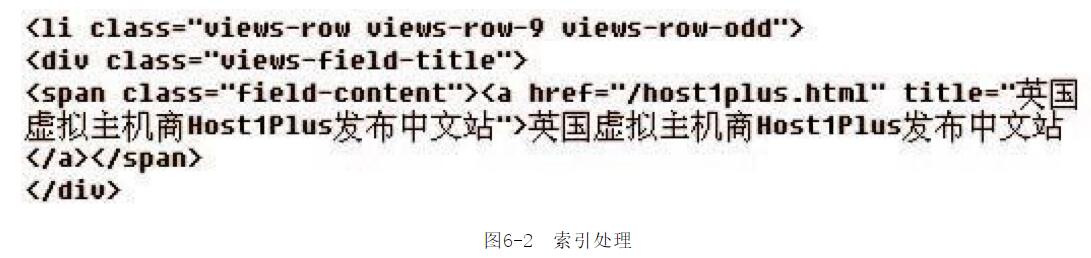任何搜索引擎在進(jìn)行內(nèi)容索引的時候都是以文字為基礎(chǔ)的。搜索引擎在抓取頁面的時候,并非只訪問用戶能看到的文字信息,還包含大量的H TIVIL代碼、css代碼、JavaScript代碼等對排名沒有作用的內(nèi)容。抓取頁面之后,搜索引擎就要處理這些信息,從HTivIL代碼中分離出標(biāo)簽、代碼,提取有利于網(wǎng)站排名處理的頁面文字內(nèi)容。一段HTML代碼如圖6-2所示。