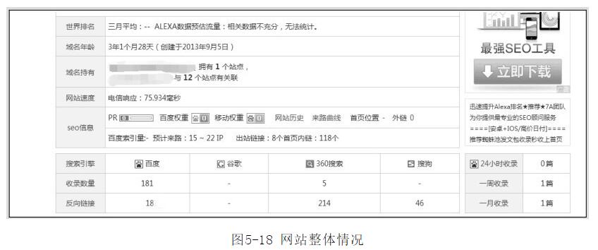 圖5-19所示為網(wǎng)站反鏈情況,圖5-20所示為網(wǎng)站關(guān)鍵詞情況。[聲明]本網(wǎng)轉(zhuǎn)載網(wǎng)絡(luò)媒體稿件是為了傳播更多的信息,此類稿件不代表本網(wǎng)觀點(diǎn),本網(wǎng)不承擔(dān)此類稿件侵權(quán)行為的連帶責(zé)任。故此,如果您發(fā)現(xiàn)本網(wǎng)站的內(nèi)容侵犯了您的版權(quán),請您的相關(guān)內(nèi)容發(fā)至此郵箱【qin@198bona.com 】,我們在確認(rèn)后,會立即刪除,保證您的版權(quán)。