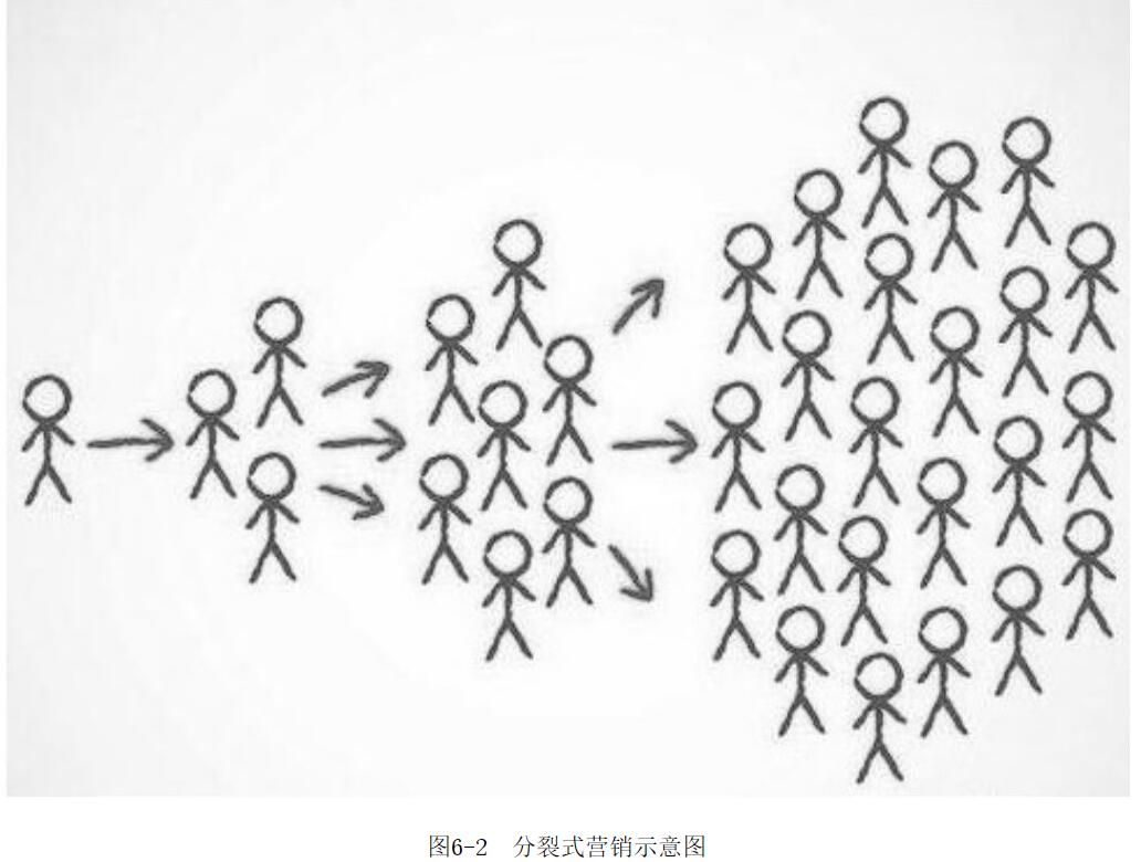 互聯(lián)網(wǎng)上每隔段時(shí)間都會(huì)出現(xiàn)分裂式營(yíng)銷(xiāo)的案例,而這些案例有些被公眾所熟知,也有些并未公開(kāi)。一個(gè)好的成功案例主要靠策劃,如之前在互聯(lián)網(wǎng)上流傳的大學(xué)畢業(yè)生集體結(jié)婚事件。這種傳十,十傳百的效果如圖6-2所示。