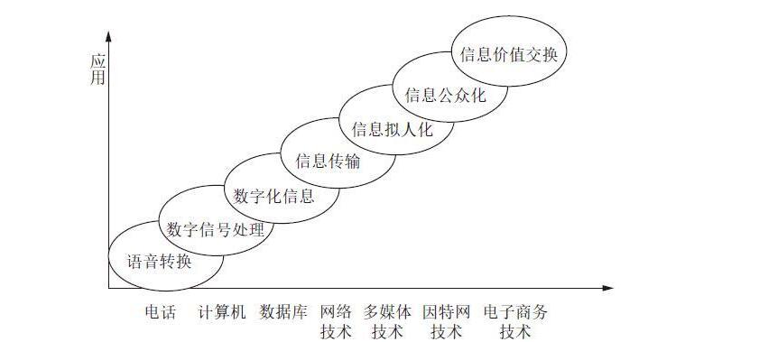 從圖1-3中可以看出以下4點(diǎn):·數(shù)字化電子計(jì)算機(jī)技術(shù)解決了信息符號(hào)的載體和信息處理問(wèn)題;·數(shù)據(jù)庫(kù)技術(shù)解決了信息的存儲(chǔ)和檢索問(wèn)題;·網(wǎng)絡(luò)技術(shù)解決了信息的傳輸問(wèn)題;·電子商務(wù)技術(shù)解決了信息價(jià)值交換的手段問(wèn)題。