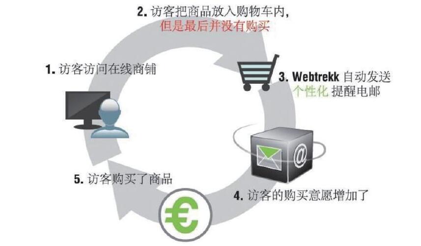 如圖2-16所示,Newsletterremarketing可以與前面介紹的Q3分析工具及不同場景的分析模塊進行整合,通過識別用戶之前的瀏覽行為進行基于EDM的商品推薦。例如,通過分析用戶瀏覽的商品推薦相似的商品,或者分析用戶可能感興趣的商品并推薦同一品類其他商品或其他同類訪問者購買的商品等。