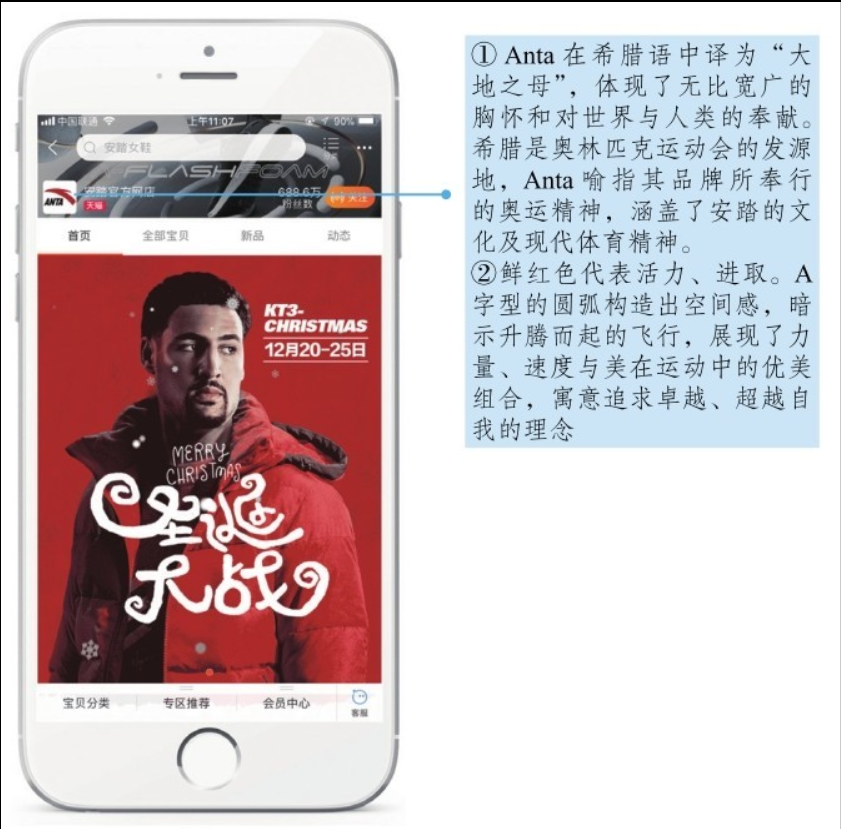 Ⅵ是品牌塑造的視覺表現(xiàn)手段,很多人認為Ⅵ只是“面子工程”,其實Ⅵ不僅只有表象,其真正的意義在于傳遞品牌的內(nèi)涵。可以這樣說,Ⅵ設計中的每一個設計細節(jié)都是為品牌量身定制的,都離不開品牌內(nèi)涵的支撐。例如,安踏品牌的視覺傳達系統(tǒng)就在傳遞著其所奉行的“奧運精神和產(chǎn)品運動性”的品牌內(nèi)涵,如圖5-15所示。因此,做好Ⅵ不僅是做好形象,更是要貫穿品牌的內(nèi)涵與精神,讓消費者不僅能夠看到品牌,還能了解并記住品牌,最終使品牌獲得消費者的共鳴、認同、支持與信任。