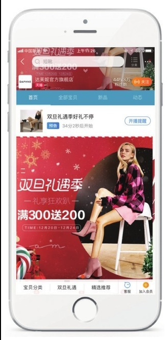 保持Ⅵ設計的領先性,其實就是在店鋪品牌精神內(nèi)涵的支撐下,將設計與市場及銷售因素相融合,制作出迎合市場環(huán)境的Ⅵ設計,以便更好地銷售商品,同時給更多的消費者傳遞品牌的信息,提高消費者對品牌的忠誠度。這里所說的領先性還指的是不定期更新店鋪的外在包裝,做出與時俱進的形象改進。當然,Ⅵ設計的標準是不能輕易改變的,更新店鋪包裝只是讓店鋪的設計升級,給消費者帶來更為精致與專業(yè)的視覺體驗,從而讓消費者感受到賣家對于店鋪品牌的細致管理與用心經(jīng)營,以此進一步提高消費者的忠誠度,這樣才能讓品牌走得更久、更遠。達芙妮品牌旗艦店隨著店鋪活動對促銷圖片進行了更新,提高了消費者對品牌的忠誠度,如圖5-16所示。